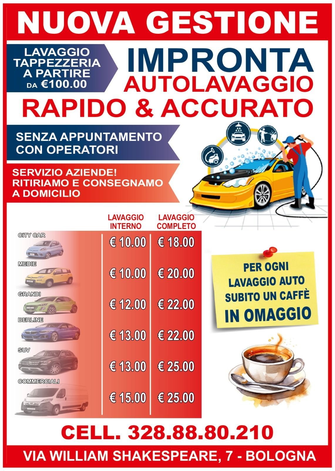 Se cerchi un autolavaggio professionale a Bologna, Autolavaggio Impronta è la scelta perfetta per prenderti cura della tua auto, moto, furgone o camion. Il nostro autolavaggio self service è aperto 24 ore su 24, 7 giorni su 7, per darti la massima libertà e comodità in qualsiasi momento della giornata.